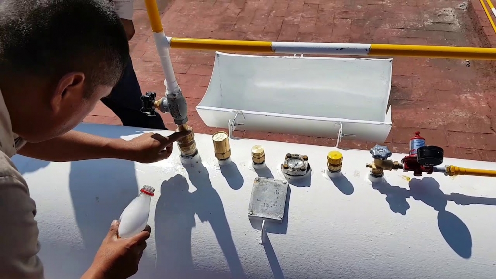 Después del rellenado del tanque, realizar una prueba a la válvula para verificar que no tenga fugas. Esta prueba puede efectuarse con agua jabonosa, si hace burbujas es signo de fuga y se recomienda hacer el cambio del tanque para mayor seguridad.